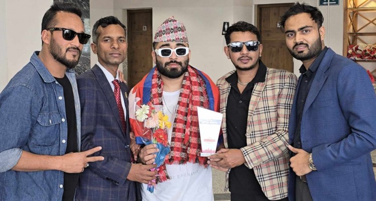 काठमाडौं । नयाँ वर्षको कार्यक्रममा लाईभ सांगितिक प्रस्तुतिका लागि प्रख्यात बलिउड गायक र र्यापर मेलो डी नेपाल आएका छन । उनी शुक्रबार अपरान्ह काठमाण्डौं आईपुगेका हुन । भारतको मुम्बईबाट एअर ईण्डिया हुँदै त्रिभुवन अन्तराष्र्टिय विमानस्थलमा उत्रिएका उनलाई एल एण्ड एन एजेन्सीका प्रबन्ध निर्देशक नितिन कायस्थ, राज्य मिडिया नेटवर्कका अध्यक्ष सरोज ओझा र सि ईओ डेभिल सिंह राजपूतले संयुक्त रुपमा स्वागत गरे ।