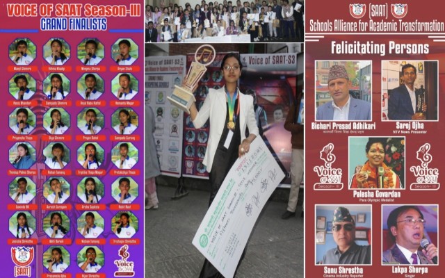 Kathmandu – Diya Ghimire from Peak Point Academy has emerged as the champion of ‘Voice of SAAT’ Season 3, a prestigious singing competition for young talents. She claimed the title with a stellar performance at the grand finale, held on Tuesday at the Russian Culture Center, Kamal Pokhari.