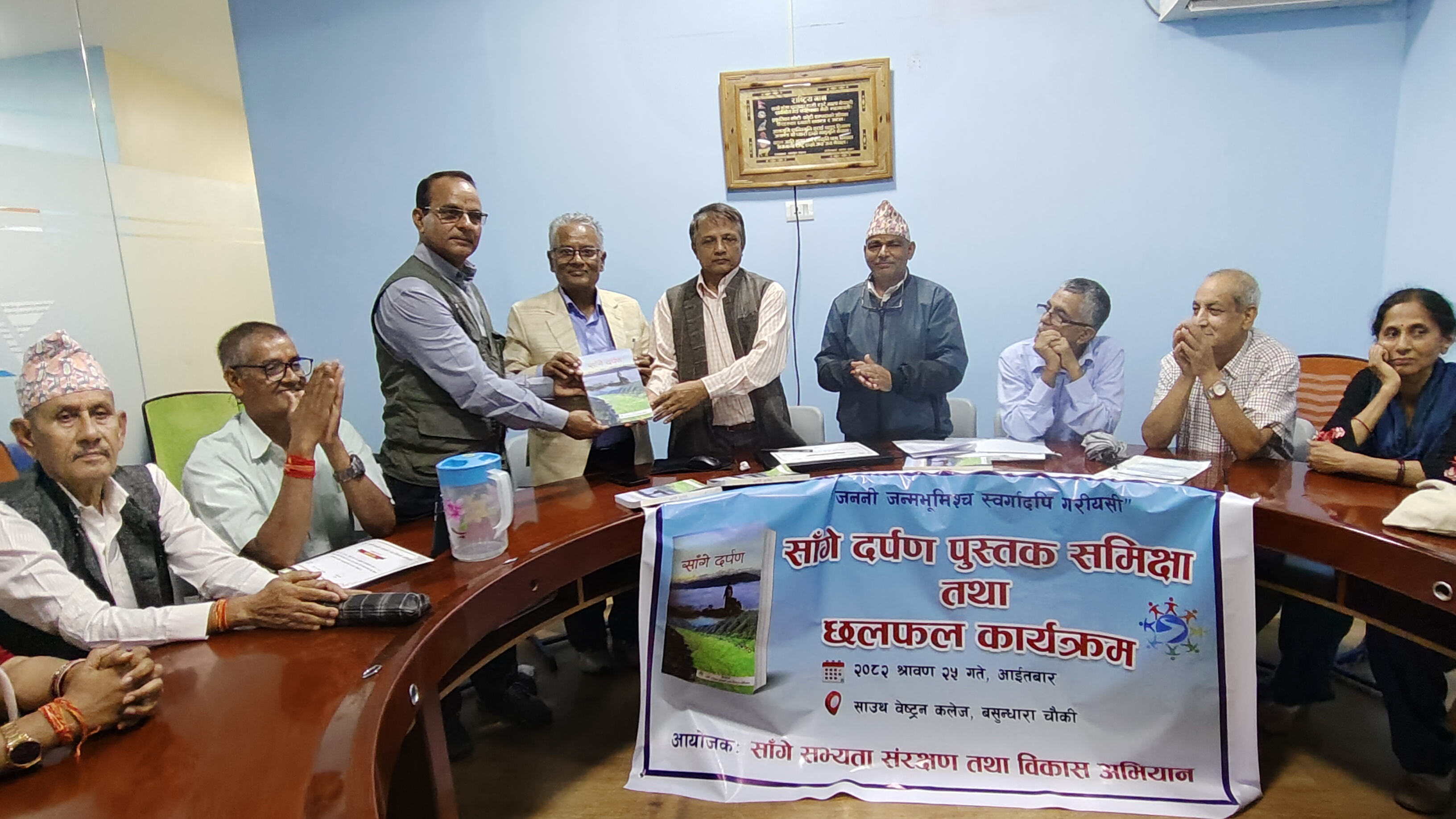 काठमाडौं। साँगे सभ्यता संरक्षण तथा विकास अभियानले ‘साँगे दर्पण’ पुस्तक समीक्षा तथा छलफल कार्यक्रम साउन २५ गते आइतवार राजधानीको बसुन्धरास्थित साउथ वेष्ट्रन कलेजमा सम्पन्न गरेको छ।